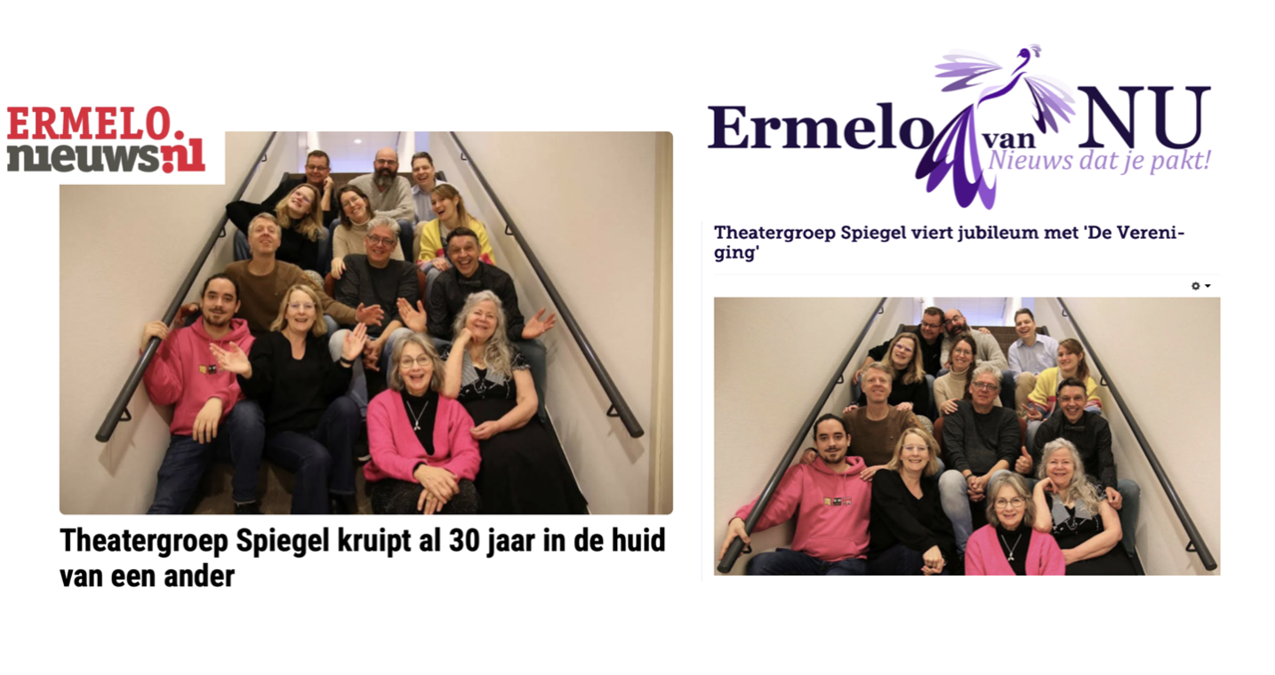 Woensdag 18 maart zijn we 30 jaar Theatergroep Spiegel. We hebben het feest al gevierd op 13 en 14 maart. Wat een geweldig leuk weekend was dat. Twee avonden genoot het publiek van ons zelfbedachte stuk De vereniging